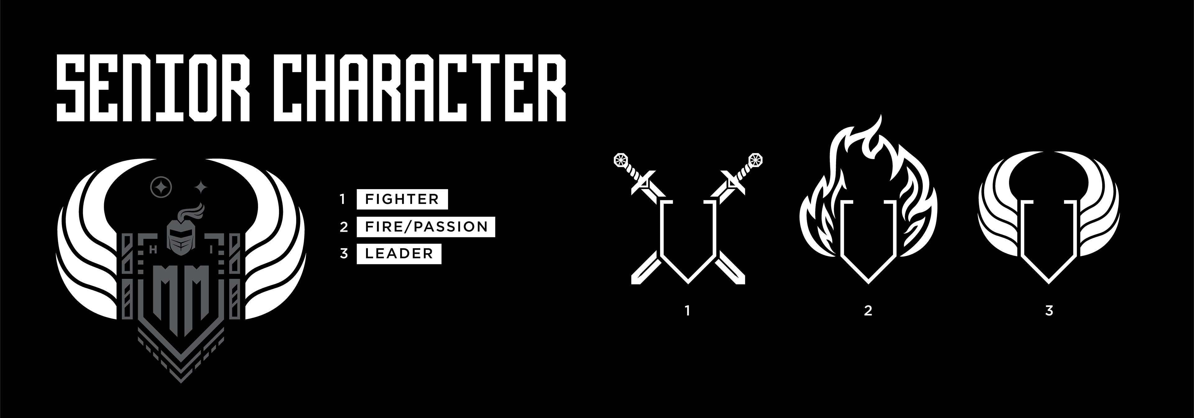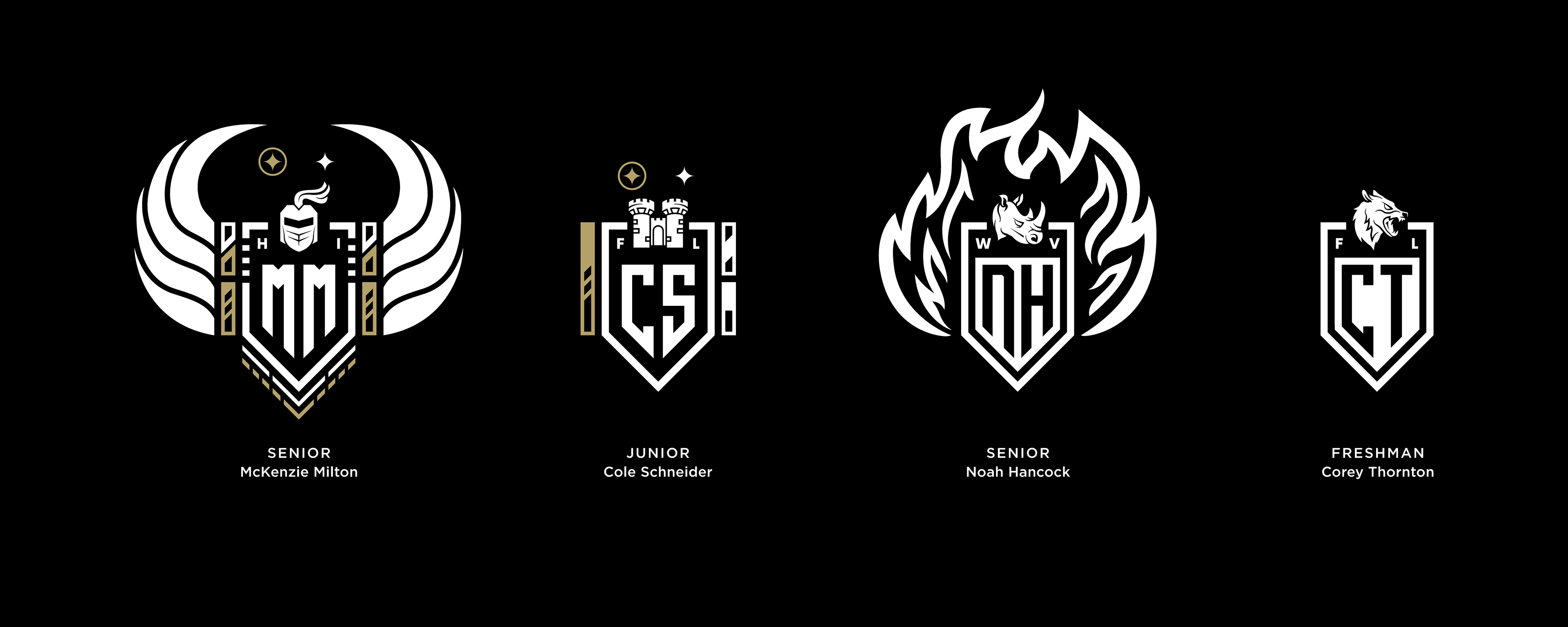 solution | Create a logo system distinct to UCF by combining the UCF Knights brand with our student-athletes’ accomplishments. Knights traditionally rode into battle under their own colors, representing their individual families, but ultimately fighting as a unit. Based on the concept of a Knight’s family crest, each student logo is a shield that tells his unique story. This includes his initials, home state, position, and on-field accomplishments.
